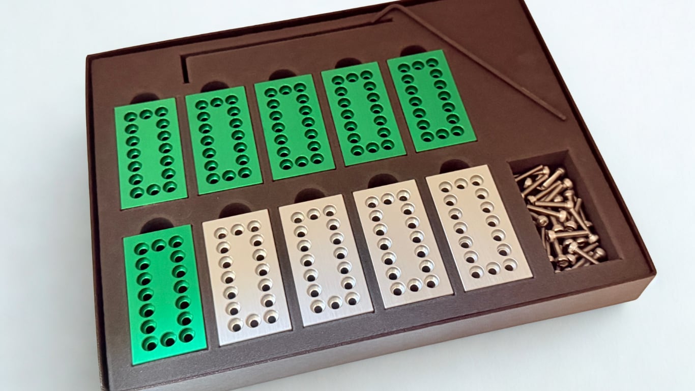 アルミニウム製の組み立てブロックの10ピースセットです。