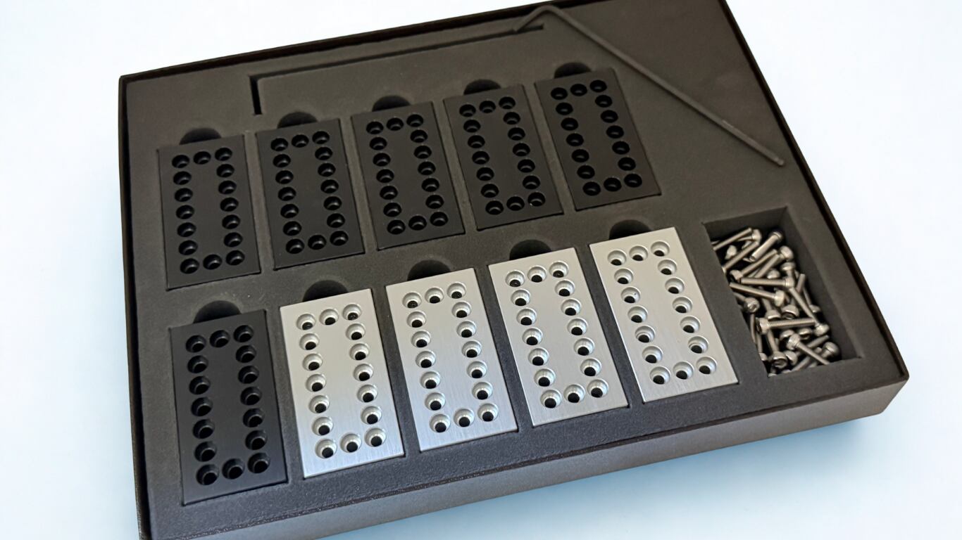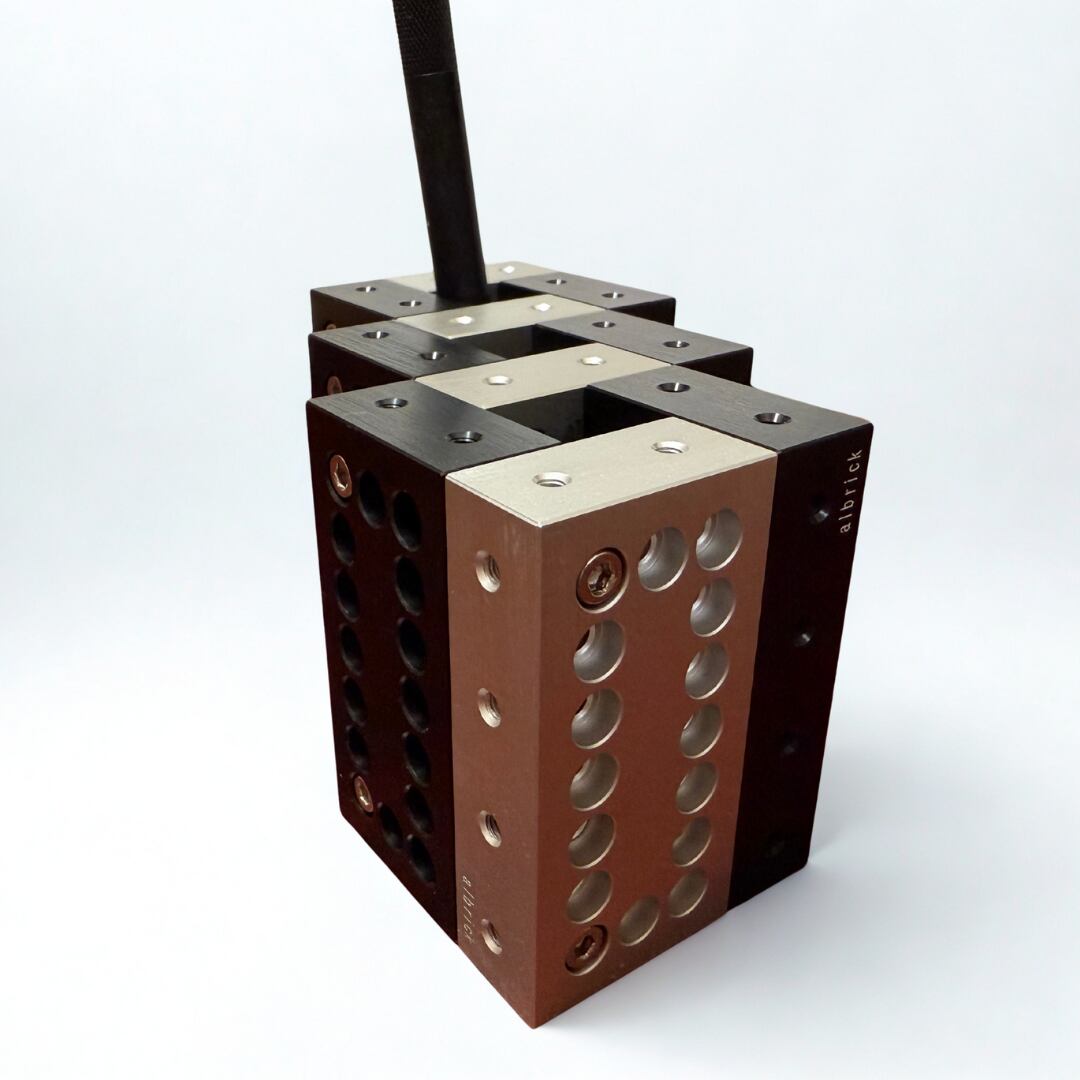 このブロックは半世紀以上にわたり精密部品を作り続ける町工場との共同開発で誕生しました。1つ1つのブロックが職人の手により精密な寸法で削り出されているので、ブロック単独ではもちろん、組み立てた後も一切ゆがみのない美しい作品を作り上げることができます。