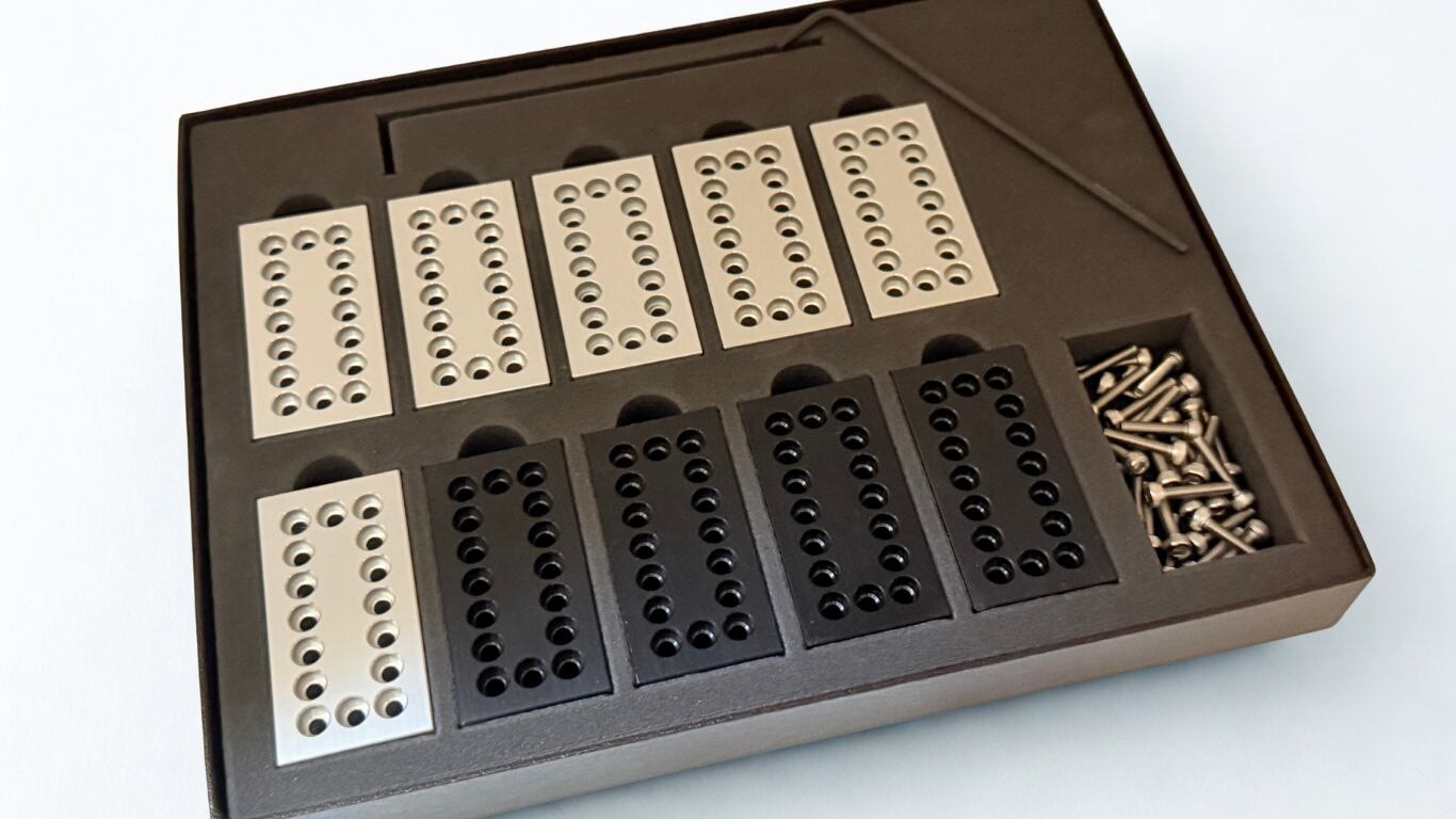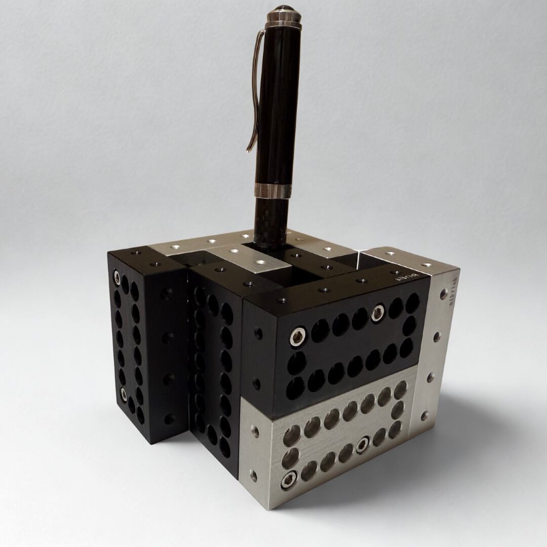 このブロックは半世紀以上にわたり精密部品を作り続ける町工場との共同開発で誕生しました。1つ1つのブロックが職人の手により精密な寸法で削り出されているので、ブロック単独ではもちろん、組み立てた後も一切ゆがみのない美しい作品を作り上げることができます。